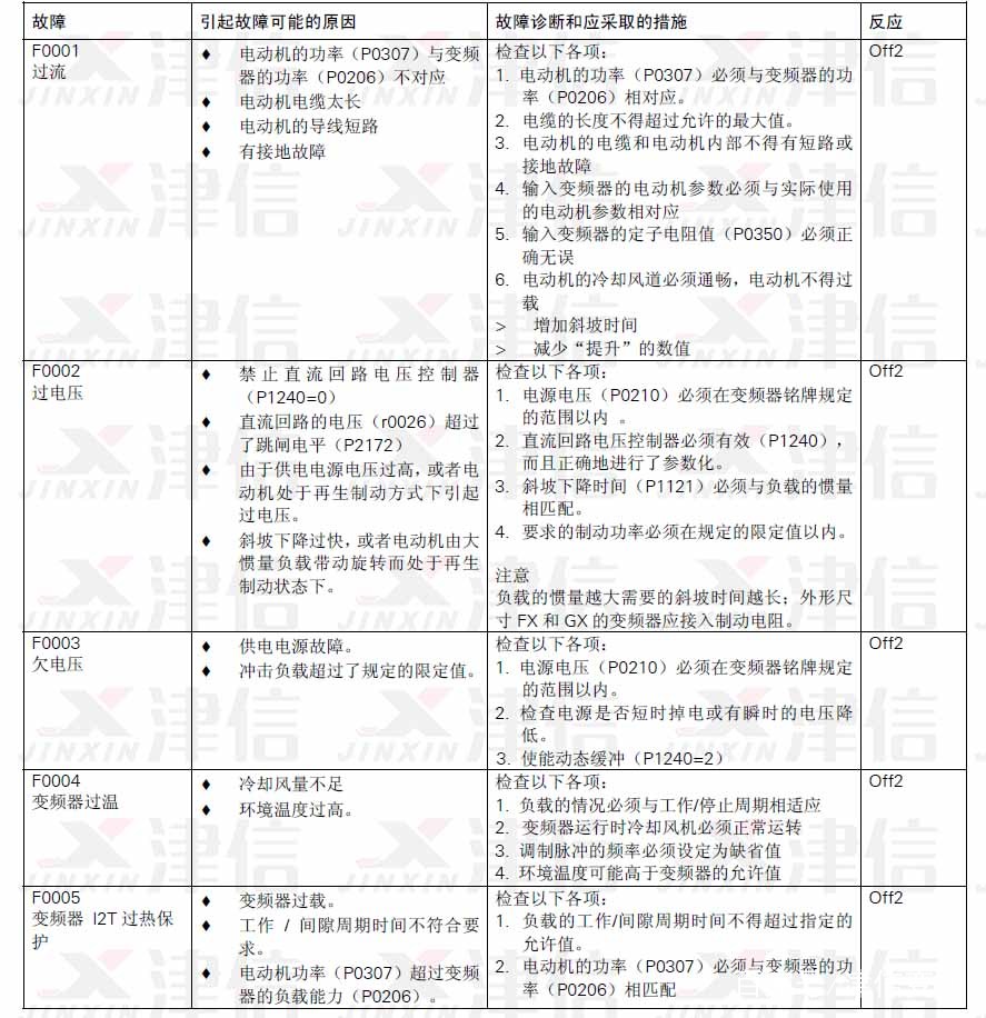 西門子變頻器在發生故障時,會在LED顯示屏上出現故障代碼,故障代碼是以F開頭的5位數表示,F代表Fault。